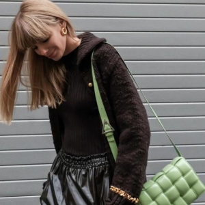 反之,大而稀疏的波点则要尽量避免密集的排列,否则容易显得臃肿缺少美感。如果波点颜色能与上衣保持一致就更好了,不仅能让造型变得活泼起来,还归避了过于死板的风险。