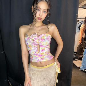 Jisoo也不止一次在舞台上pick他家的薄上衣,带有鲜花设计的清透背心很有识别度。